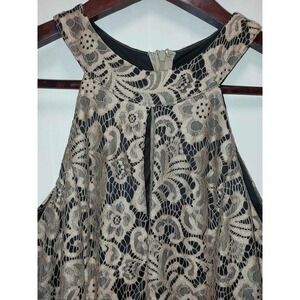 Beautiful Dress. Beige Lace on black. Large keyhole opening at the bust is sure to turn heads. Sleeveless. By NIKIBIKI size small