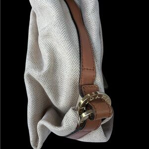This is a beautiful and elegant bag. It is in excellent condition with minor signs of wear. The cognac lamb contrasts beautifully against the light canvas. The inside is spotless.