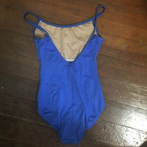 Spaghetti straps with a 2 visible seam lines down the sides. This beautiful leotard is also equipped with lined bust coverage.