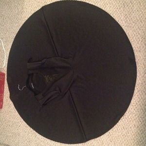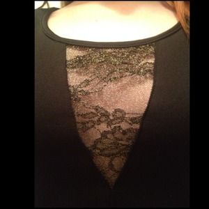 Dress has only been worn once and is a thick black fabric with darts at the chest to make it form fitting and gold lace on the plunging neckline. The skirt is a circle skirt so it has a lot of movement. WARNING! I want to be completely honest in all my listings and this dress must be worn with a super plunge or sticky bra.