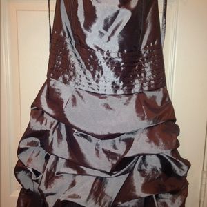 Shimmery silver cocktail dress! Took 2nd pic with flash so u could appreciate the shimmer too!!! Says a size 11, however I had it altered so it's fits more like a size 6 dress!