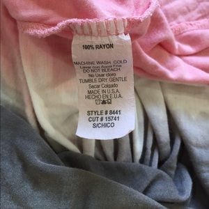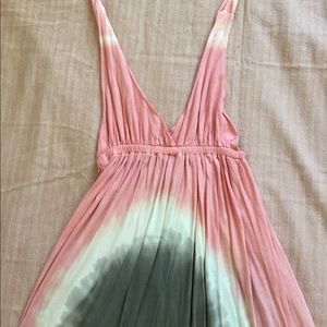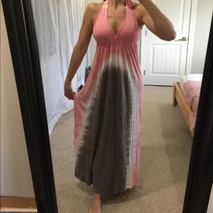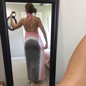 Pink, grey, cream tie-dye maxi dress. I'm 5'9" so you can see in pics where where the hem is. Tag says small but it runs big and I wear mediums. Excellent used condition.