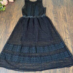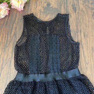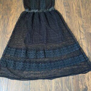 Gorgeous l crochet Bebe dress size 10. Preloved great condition. Worn once. Thick crochet throughout the entire dress. The top does not have coverage, it’s completely see through, the bottom half has a short spandex skirt for coverage. Approximate measurements pictured.