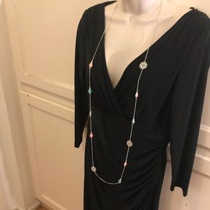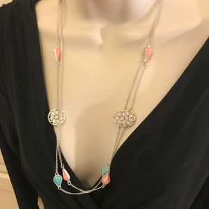 Delicate silver chain with pink, green and silver pieces. Can be worn as single strand, double or triple. Many possibilities!