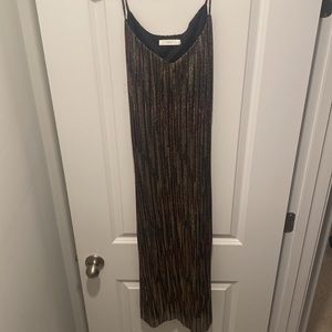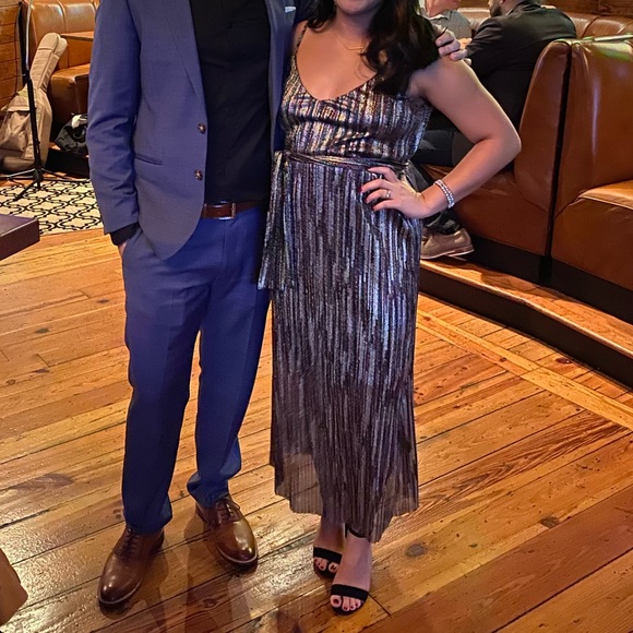 A perfect NYE dress!! Multicolored sequin. Polyester and metallic material. Has black lining inside. Matching tie-band to cinch the waistline. Like new. Worn once.