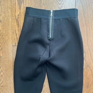 Excellent condition, great fit( like leggings) very soft material and very comfortable. Slit bottom with metal detail, as well as metal zipper at the back.