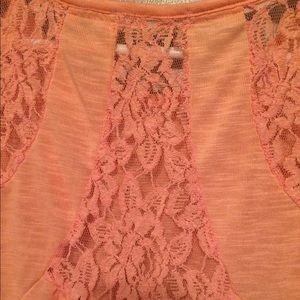 The perfect top for a night on the boardwalk ! This top was never worn just removed the tag !! Gorgeous light peach color . Lightweight material makes it perfect for summer nights!! Has lace detail on back as pictured. NWOT