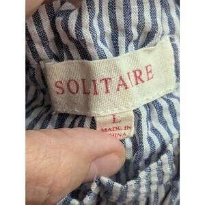 Gorgeous pinstripe off the shoulder peasant style blouse w/floral embroidery size L by Solitaire peasant blouse Renaissance Faire Renfaire base layer layering gypsy hippie Bobo music festival artsy wagon look prairie look casual vacation excursion coastal beachy poolside seaside brunch