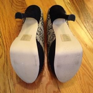 These are absolutely beautiful and I hate to get rid of them but they are too small. Brand new, only worn to try on. It has very detailed black and nude tiny raffia weaving for the slightly tribal pattern. Heel and platform are a suede-ish material. I hope these go to a good home! Message me for bundle deals or discounts!