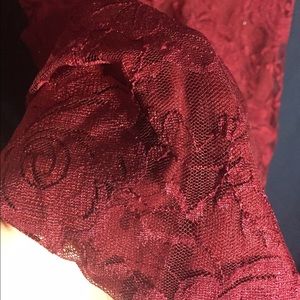 Absolutely beautiful dress, only worn twice! Dark red lace, color closer to what is shown in third pic. Cross back design with a low skirt. I would love to see someone else get use out of this dress!