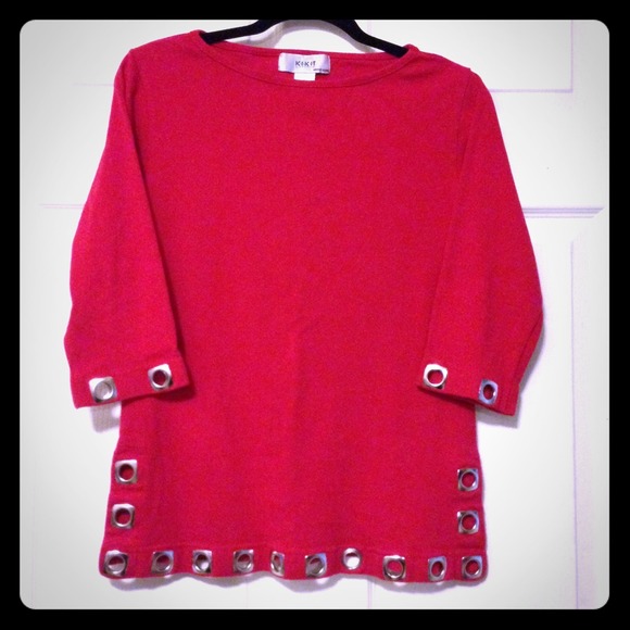 Women's red top with riveted details. 3/4 sleeves. Size S.