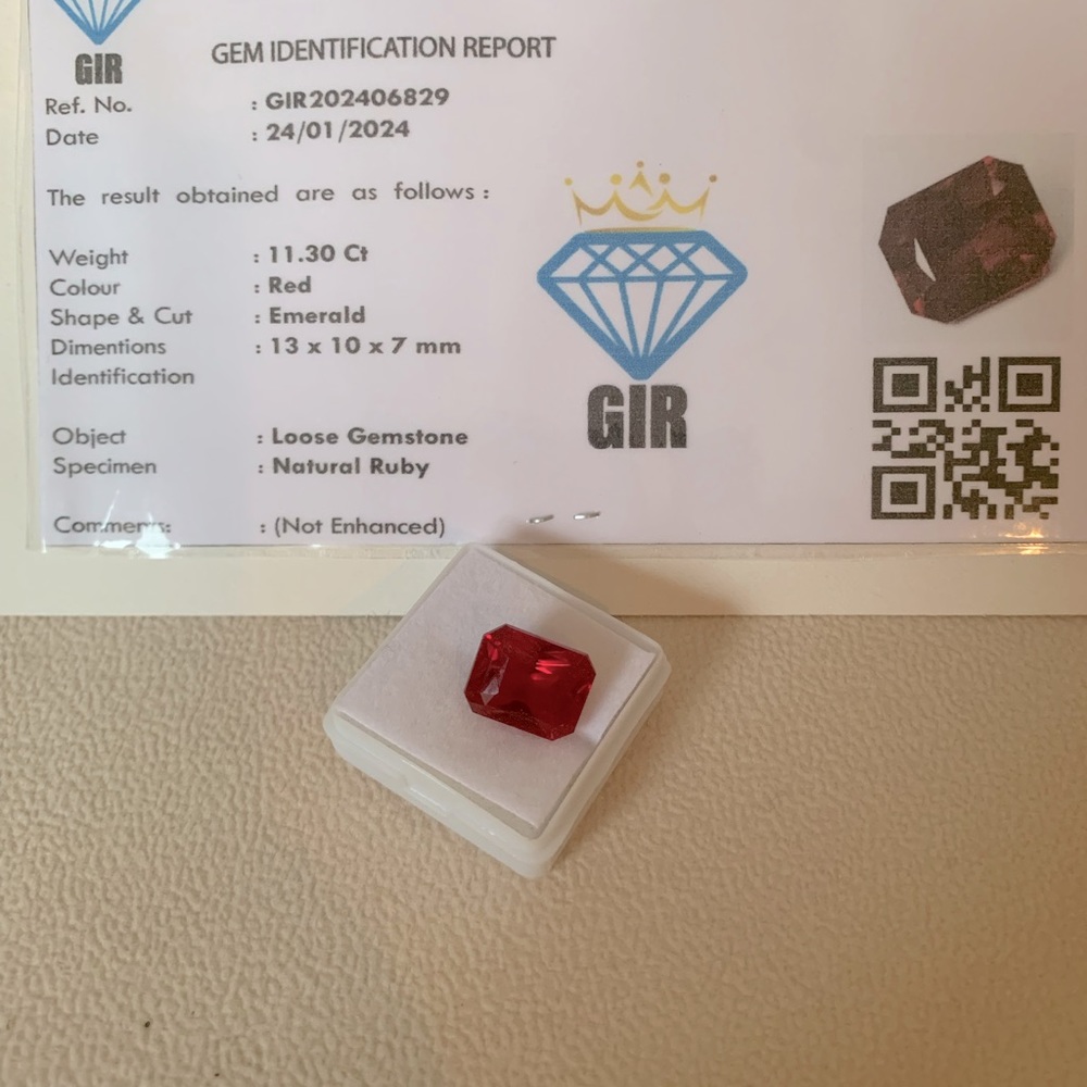 This fiery ruby is stunning! I have taken a photo of the gem ID report that will be included with your purchase. 11.30 cts!