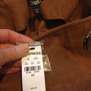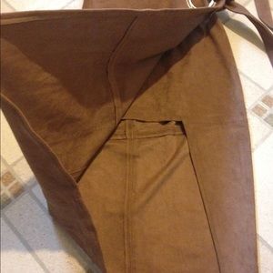 Gorgeous suede like material skirt from express. There is a ring with a tie to adjust the waist, and inside button, and a slit in the front. Smoke free pet free home
