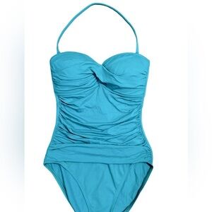 Gorgeous turquoise This bandini swimsuit from La Blanca will transport you to island time with its stylish twist bodice, ruched detailing, and convenient removable straps.