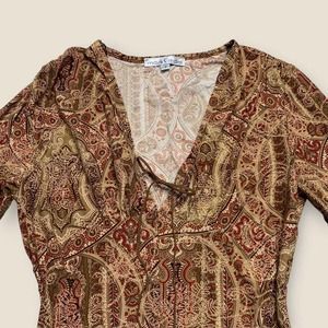 Gorgeous vintage 90s boho indie paisley print flare sleeve blouse top, made in USA