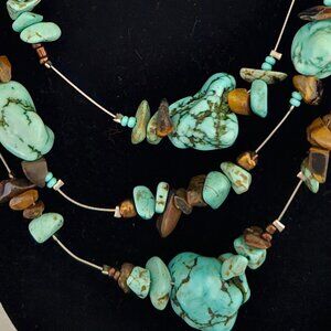 Gorgeous vintage TURQUOISE 3-strand necklace Tiger Eye genuine