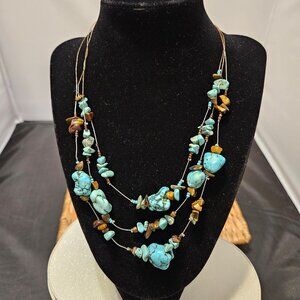 TURQUOISE & Tiger's Eye 3-strand necklace