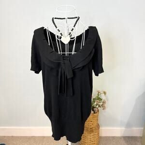 Gorgeous vintage y2k black ruffle tie babydoll sweater top- so cute and fitted 🦋