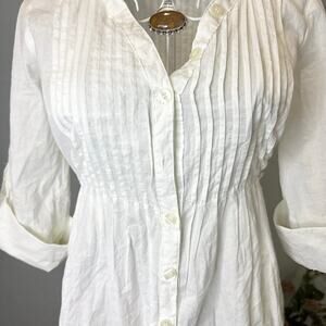 Gorgeous vintage y2k white fairy babydoll long sleeve top with pretty pleats, buttons, and waist tie 🦋