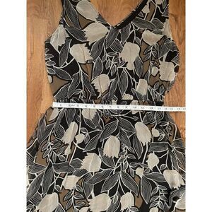 brand tag is missing, however, this appears to be a dress from Mo Industries, LLC in Los angeles, CA. The size tag is also missing, I added measurements, please review for accurate sizing! If you need a measurement of something else. The dress is otherwise in great condition, with a black lining under the floral shell and elastic waist. The shell is 100% silk and the lining is rayon. Based on the measurements, I would guess this is a large. There is slight peeling on the fabric as shown in photo, it's difficult to see unless one is looking for it.