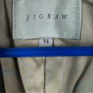 Jigsaw women’s wool blazer. Tapered design with flap front pockets and fully lined. 2 button front closure.