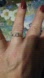 This beautiful bridal ring set is gorgeous! The engagement ring has a center 3/4 carat round cut AAA quality Russian simulated diamond stone. There are accent stones on each side. The ring guard features stones at the top and bottom, The engagement ring fits securely into the center of the ring guard. There are a total of two carats of gem weight in the set. Both pieces are done with a total of 6.2 grams of .925 solid sterling silver and are stamped for authenticity. They have then been platinum clad for a lifetime of sparkle and durability. It is size 8.