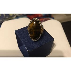 Gorgeous 30 Carat Genuine African Tiger Eye Gemstone Filigree Ring Sz 8