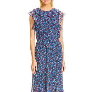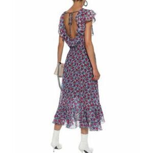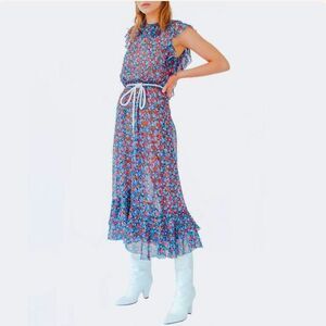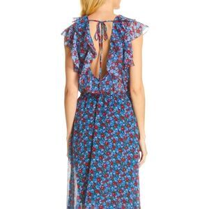 Vintage Floral Ruffle Georgette Cotton and Silk Blend Flowy Dress