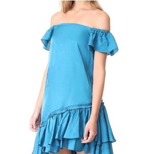 Gorgeous Cinq a Sept Aqua Off The Shoulder Ruffle Tiered Dress