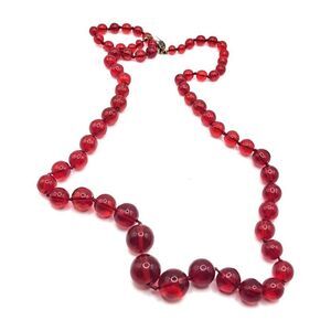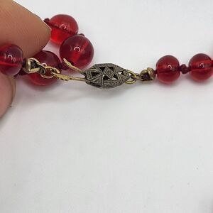 Gorgeous Czech Red Glass Bead Knotted Necklace 27in | Materials: red glass | Length: 27in | Clasp: box clasp hook in loop | Signed? no | Excellent vintage condition