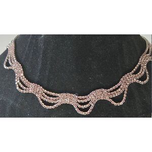 Gorgeous FREE PEOPLE Pink Rhinestone Scalloped Seas Choker Style Necklace