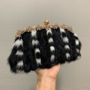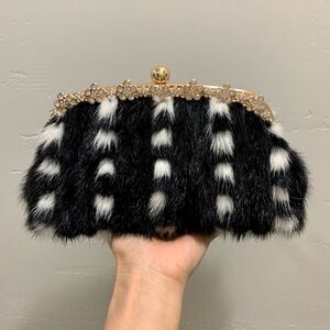 Gorgeous Handmade Real Mink Fur Rhinestone Push-lock Clutch/Wristlet/Crossbody