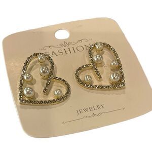 Absolutely beautiful heart earrings and the pictures don’t do justice. Gold tone pierced heart designed earrings lined with rhinestones that shine like diamonds and accented in pearls. Just stunning. Only one pair.