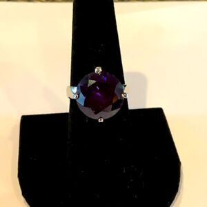 Beautiful silver costume ring with large purple stone that is iridescent in the light with beautiful bridge work that looks like a crown. Size 7.5. This is just an adorable ring.