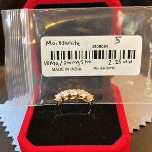 Gorgeous Moissanite 5 Stone Ring set in 18k Yellow Gold over 925 Sterling Silver. 2.25ctw. size 5. Brand New. Comes with a premium Gift Box.