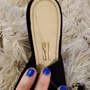 Gorgeous Santa Lolla platform suede heels with chain that wraps around the ankle, size 9.