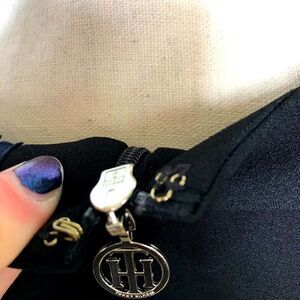 Gorgeous Tommy Hilfiger black sleeveless a-line style dress, size 4. With hidden back zipper with gold logo pull and clasp closure, both functional. Bottom of the skirt has cute cutout detail adding a little extra something to a classic little black dress. Can easily be worn for worn for work or many other occasion. This dress is new with tags and has no known flaws. Comes from a smoke free home.