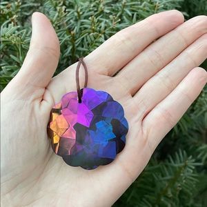 Beautiful new 45mm purple mix glass crystal sun catcher. Great for catching prisms through the window on sunny days! Comes with hanging string.