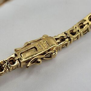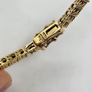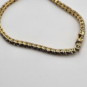 Gorgeous Tennis Bracelet Crystal With Gold tone Signed Safety Clasp 7.5in | Materials: gold metal alloy, crystal | Length: 7.5in | Clasp: safety clasp | Signed? signed someting I cant read | Excellent vintage condition