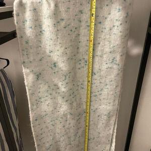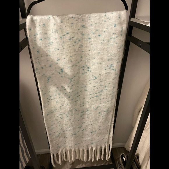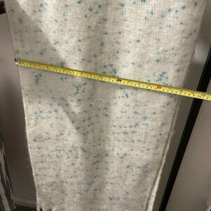 This scarf is comfy. Double the length shown since folded in half. Cream with blue specs.