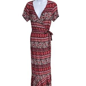 Gorgeous wrap style maxi dress, no brand or size tag but fits a small or x-small. Looks great on!