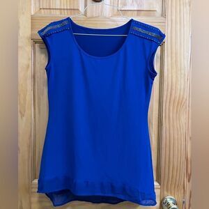 Gorgeous cobalt blue rhinestone and bead embellished blouse size small