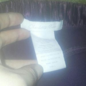 Burgundy rippled polyester dress falls above the knee it is Strapless and zips up in back with tie strings also in back
