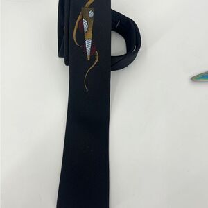 Gorgio Sant Angelo Men's Embroidered Geometric Tie. Made In USA. Color; black, Gold Made With 50% Polyester 50% Viscose