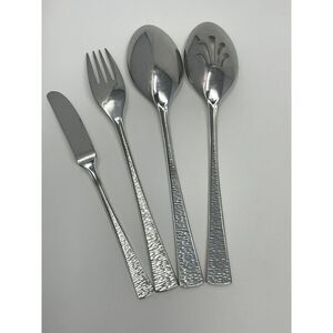Gorham BISCAYNE Serving Spoon Fork Butter Stainless Flatware Hammered Set Of 4