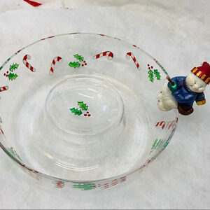 Gorham Chip & Dip Holiday Dish Fishing Snowman Party Winter Follies Holly. B1