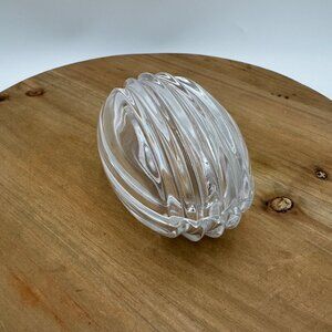 This vintage Gorham crystal egg-shaped trinket box is perfect for collectors and decorative display. Its nut-shaped design adds a unique touch to any room. Ideal for storing small treasures or as a charming gift for loved ones.