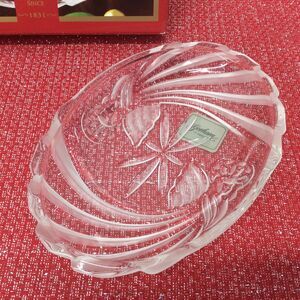 Gorham Frosted Crystal Oval Candy Dish "Angels Of Peace" Christmas Holiday 8.5"