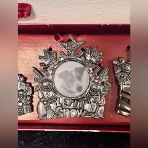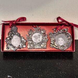 Gorham Set of 3 Silverplated Picture Frame Ornaments Snowman Stocking Santa Claus NEW