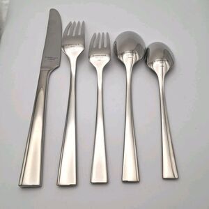 The Gorham Twist 15 Piece Place Set is a stylish and modern set of stainless steel flatware, perfect for serving 3 adults. The set includes knives, forks, teaspoons, salad forks, and spoons, all with a glossy silver finish. Made by the reputable brand Gorham, this set is durable and dishwasher safe, making it convenient for everyday use. The set also features a solid stainless steel handle, adding a touch of elegance to the table setting. With a lifetime manufacturer warranty, this set is a reliable and high-quality option for any dining table.